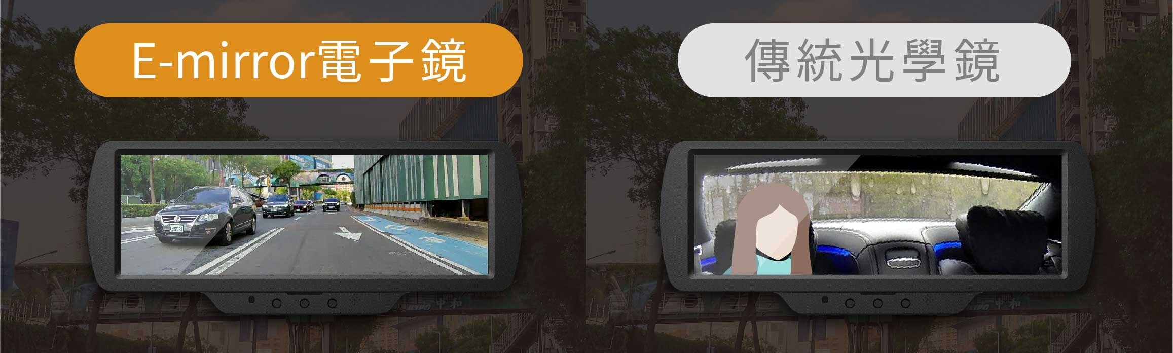 透過安裝在車體兩側的鏡頭,將影像傳輸至車內的E-mirror電子後照鏡。